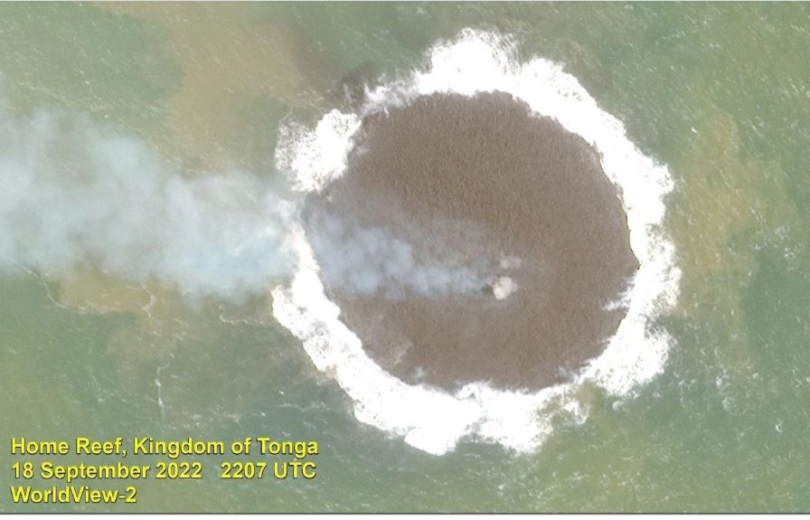Vụ phun trào núi lửa tại Tonga đã giúp hình thành một hòn đảo mới. Ảnh: Cục Khảo sát Địa chất Mỹ.