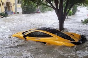 Tuy nhiên, rất nhanh sau đó, gara của ngôi nhà bị ngập nước còn 2 chiếc McLaren P1 và Rolls-Royce Phantom nổi lềnh bềnh. Chưa dừng lại ở đó, chiếc McLaren P1 màu vàng còn bị nước lũ cuốn ra khỏi gara và “dừng lại” ngay dưới gốc cây ở ngoài nhà.Đáng buồn hơn nữa là cả McLaren P1 và Rolls-Royce Phantom đều còn rất mới. Chiếc Rolls-Royce Phantom mới được tậu cách đây ít ngày, còn chiếc McLaren P1 mới chỉ chạy được khoảng 482 km.