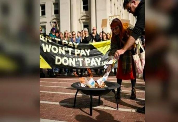 Người Anh đốt hóa đơn điện để phản đối giá tăng. (Ảnh: RT)