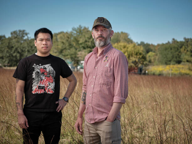 Andy Huỳnh Tài và Alex Drueke tại Trinity, Alabama hôm 29 tháng 9, 2022. Họ được thả ngày 21 tháng 9 sau 104 ngày bị Nga bắt làm tù binh tại Ukraine. (William DeShazer/ The Washington Post via Getty Images)