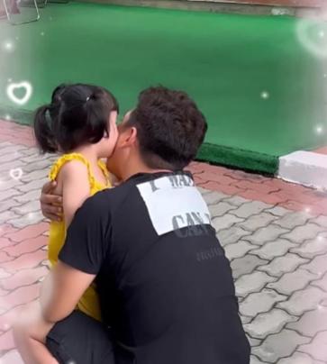 Đáng nói, cô bé đã thể hiện tình cảm với ba mình bằng cách thơm má cực kì ngọt ngào.