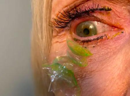 Mới đây, một video lan truyền trên Tik tok ghi lại cảnh một bác sĩ đang tháo nhiều kính áp tròng màu xanh lục ra khỏi mắt một bệnh nhân.