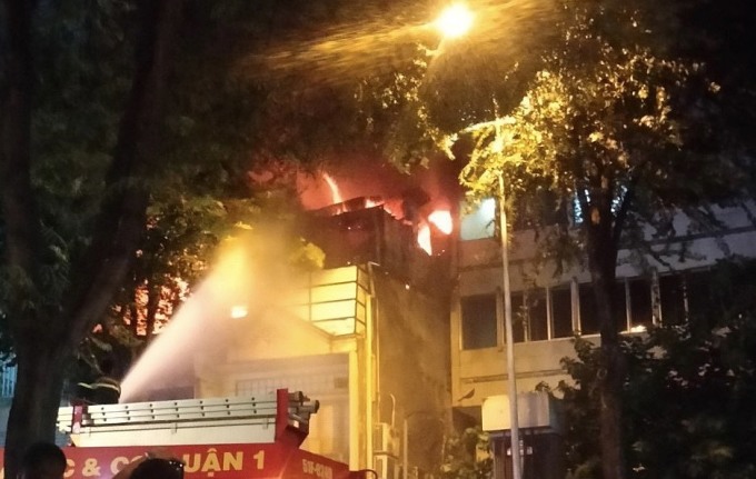 Hơn 20h, lửa phát ra từ tầng 3 của nhà hàng món Nhật trên đường Hai Bà Trưng, phường Bến Nghé. Nhiều tiếng nổ phát ra, một số thực khách và nhân viên quán tháo chạy ra ngoài. Ít phút sau, đám cháy bao trùm tầng này, lửa đỏ rực cả khu phố.