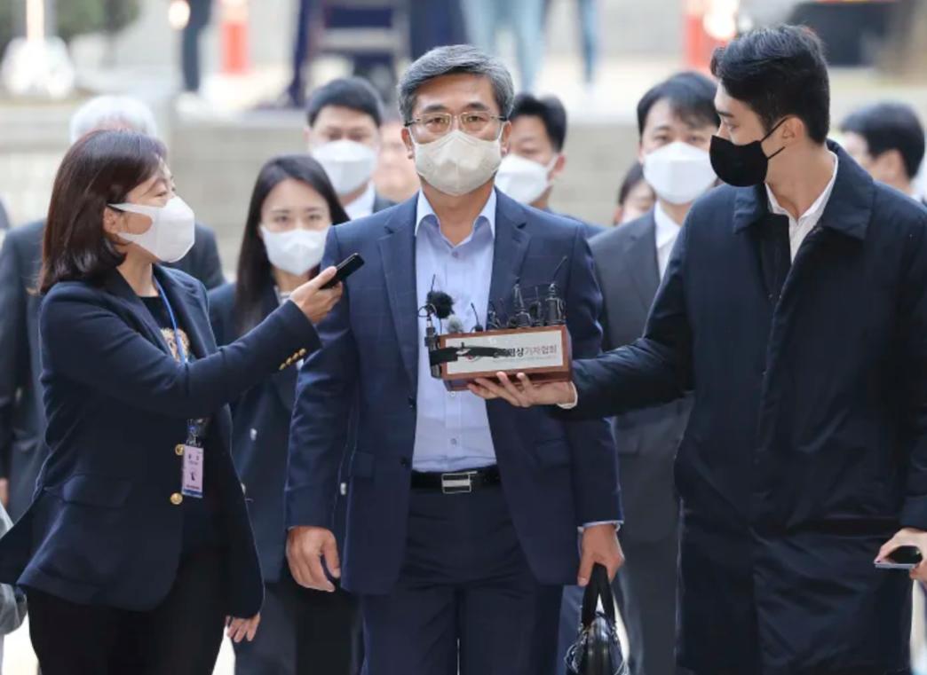 Cựu bộ trưởng quốc phòng Hàn Quốc Suh Wook xuất hiện tại tòa án ngày 21.10. chụp màn hình yahoo news