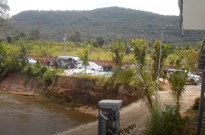 Hình ảnh từ camera của người dân cho thấy vụ nổ súng xảy ra lúc 11h23. Lúc này, có 2 xe 7 chỗ và một xe 16 chỗ đậu trên đường cạnh con suối.