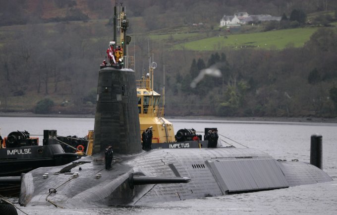 Tàu ngầm HMS Vengeance của Anh, thuộc lớp Vanguard và được trang bị tên lửa đạn đạo Trident, tại quân cảng Fasland gần Glasgow, Scotland vào năm 2006. Ảnh: Reuters.