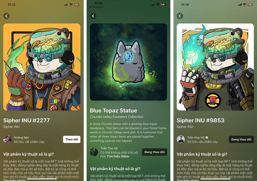 Hoàng Đức, nhân viên IT ở Đà Nẵng, cho biết trước đây anh không quan tâm đến NFT. Sau khi thấy bạn bè đăng các tác phẩm số trên Facebook, anh cũng thử tạo ví, mua NFT để không bị mang tiếng "lạc hậu". Khi ấn vào NFT, thông tin về chủ sở hữu, tên tác phẩm, giá, bộ sưu tập... được mô tả chi tiết, khác với việc đăng một bức ảnh theo cách truyền thống.