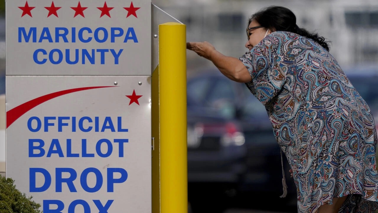 Một người bỏ lá phiếu vào thùng thư ở Mesa, Arizona, Hoa Kỳ, ngày 07/11/2022. AP - Matt York