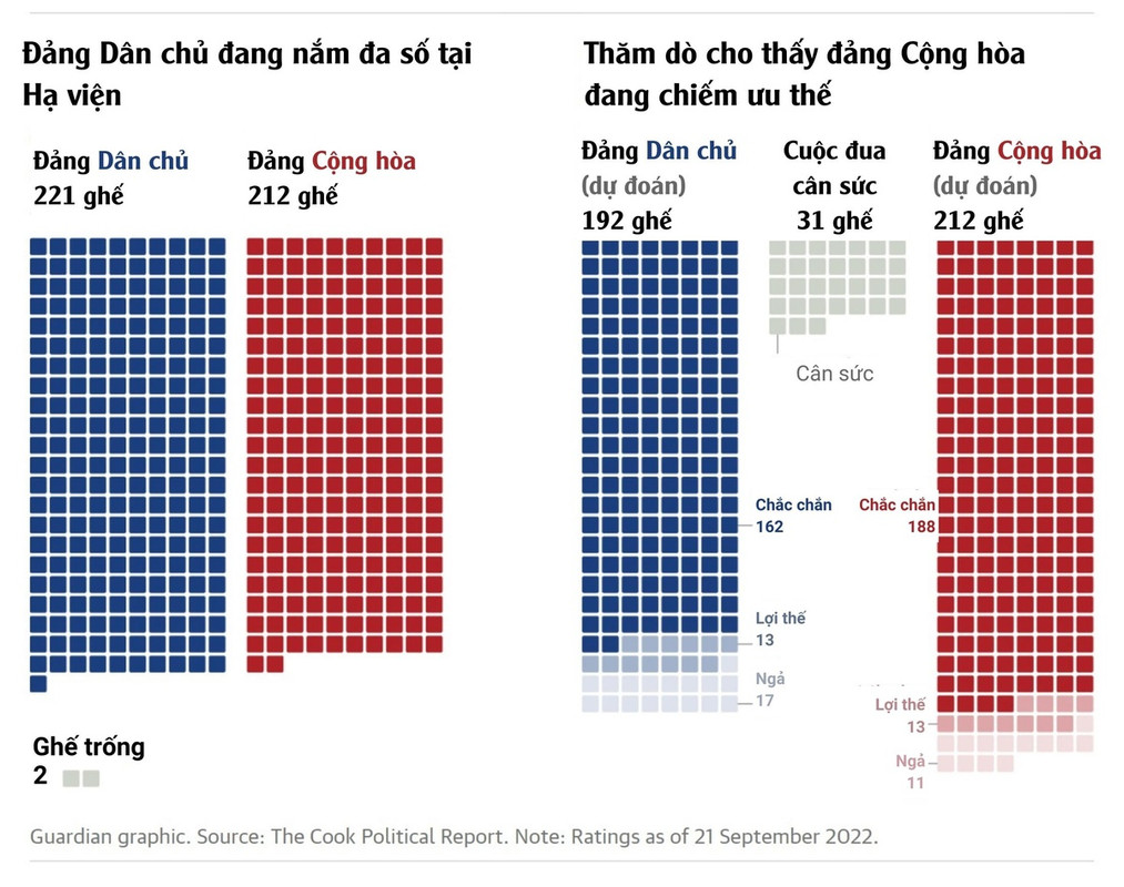 Cuộc đua tại Thượng viện. Đồ họa: Guardian. Việt hóa: Trần Hoàng.