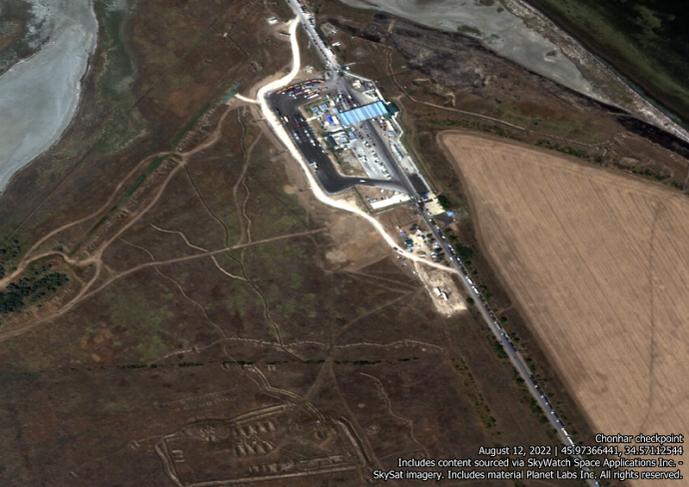 Benjamin Pittet, một nhà phân tích tình báo nguồn mở đã đăng tải các hình ảnh vệ tinh trên Twitter cho biết, quân Nga đang đào chiến hào ở phía bắc của Crimea. Đặc biệt, Nga đã khôi phục các đường hào gần trạm kiểm soát xuất nhập cảnh Chonhar, nằm giữa Crimea và Kherson Oblast. Hơn nữa, các chiến hào mới đã được đào.