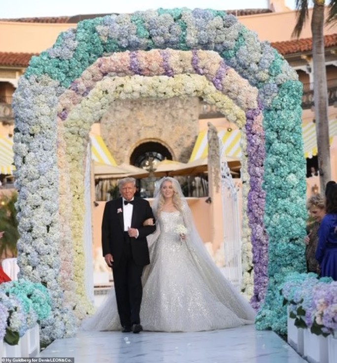 Cựu Tổng thống Mỹ Donald Trump đích thân dắt tay con gái Tifffany Trump vào lễ đường trao cho chàng rể tỉ phú Michael Boulos trong lễ cưới tráng lệ tối 12-11 (giờ Mỹ).