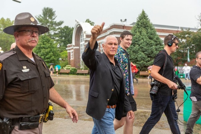 Cựu phó Tổng thống Mỹ Mike Pence (thứ hai từ trái sang) tại Des Moines, Iowa, hồi tháng 8. Ảnh: Reuters.