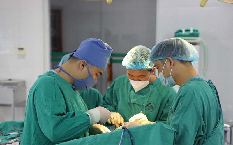 Các thầy thuốc phẫu thuật cắt khối u cho bệnh nhân. Ảnh: BVCC