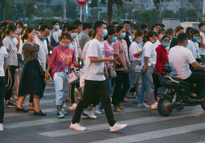 Các công nhân tại nhà máy Foxconn ở thành phố Trịnh Châu, tỉnh Hà Nam, miền trung Trung Quốc, hồi tháng 9/2021. Ảnh: AFP.