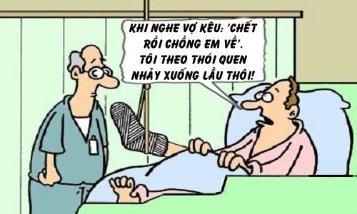 - Sao tự dưng anh lại nhảy từ trên lầu xuống để gãy chân thế này?