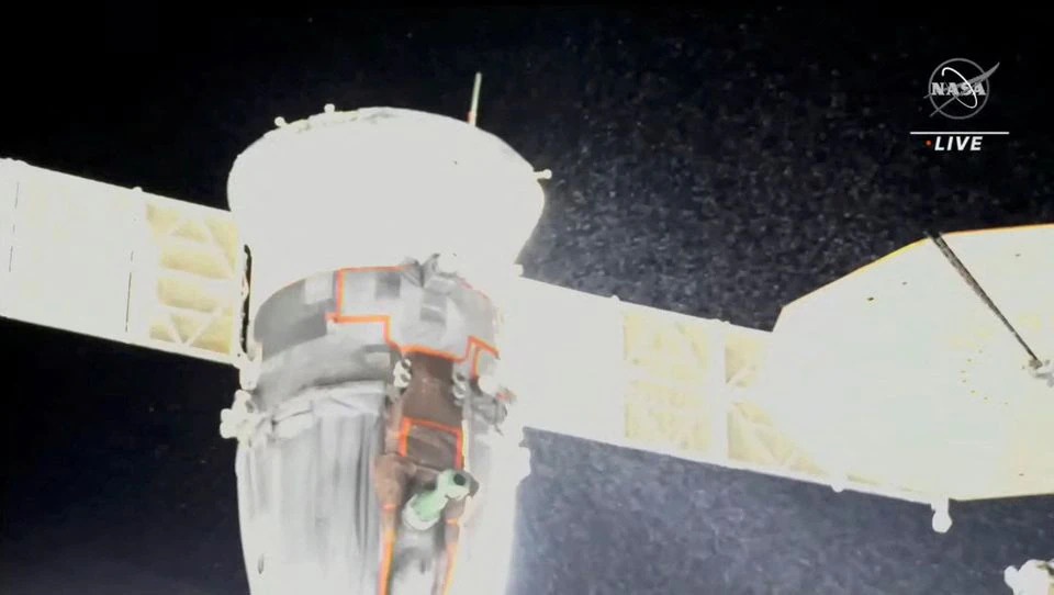 Chất bị rò rỉ được cho là chất làm mát từ tàu Soyuz MS-22. Ảnh: NASA TV.