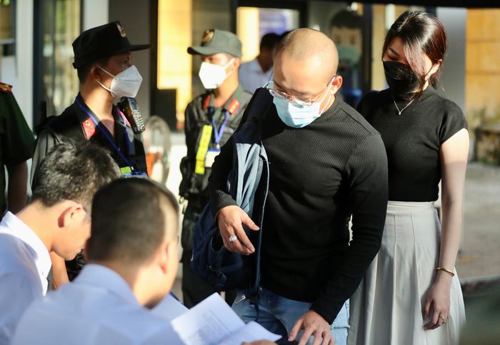 Một bị hại xếp hàng tham gia phiên tòa. Ảnh: Y Kiện.