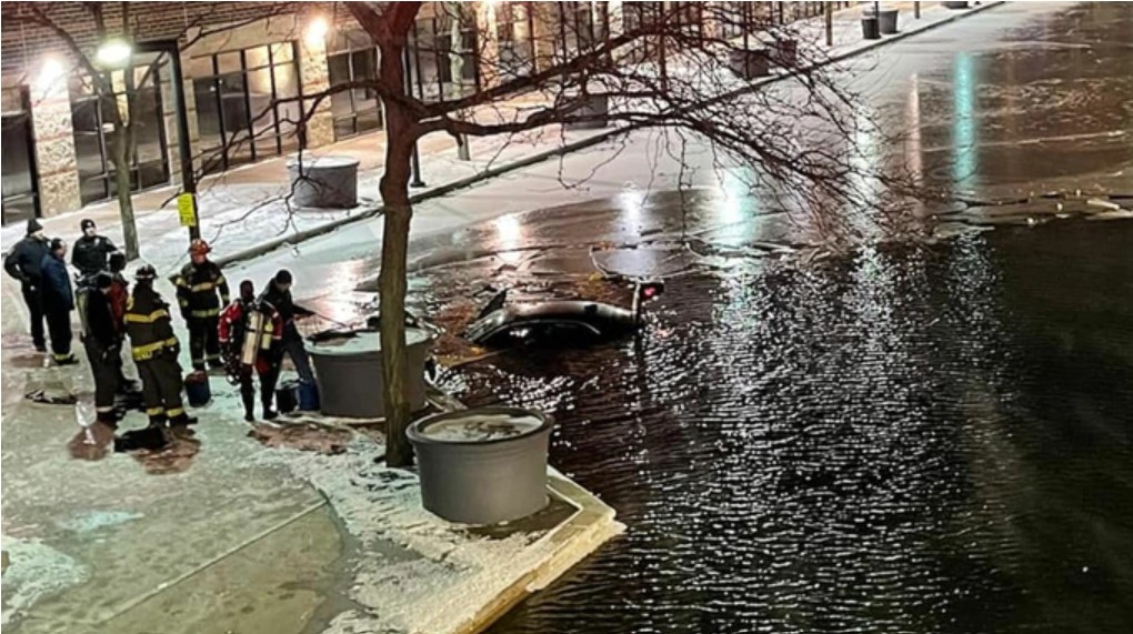 Sự việc xảy ra tại thành phố Indianapolis, thủ phủ của tiểu bang Indiana, Mỹ. Theo đó, Sở cứu hỏa Indianapolis đã phát hiện một phụ nữ 33 tuổi lái ô tô chạy trên bờ kè rồi lao ra giữa mặt kênh đóng băng, chạy một đoạn khá dài trước khi mắc kẹt. Chiếc xe đã làm vỡ lớp băng và lao xuống nước.