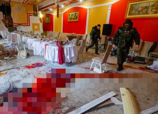 Hiện trường vụ pháo kích vào khách sạn Shesh-Besh nơi ông Dmitry Rogozin ở tại Donetsk - Ảnh: REUTERS