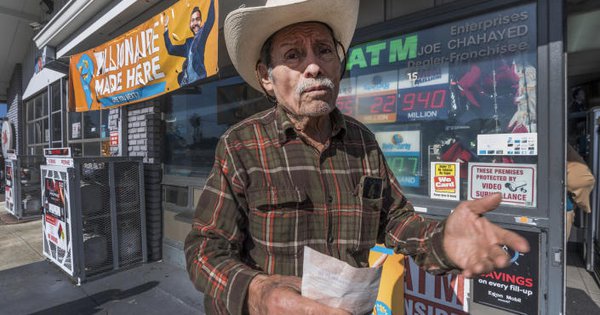 Ông Elijah Kouza, làm việc tại cửa hàng tiện lợi ở Livonia, bang Michigan, cho biết giải độc đắc Mega Millions đã thu hút rất nhiều khách hàng trước đợt quay số chiều tối 6-1. Giải thưởng trị giá 940 triệu USD được quảng cáo nổi bật tại cửa hàng và ông Kouza ​​bán được nhiều vé Mega Millions hơn trong ngày 6-1.