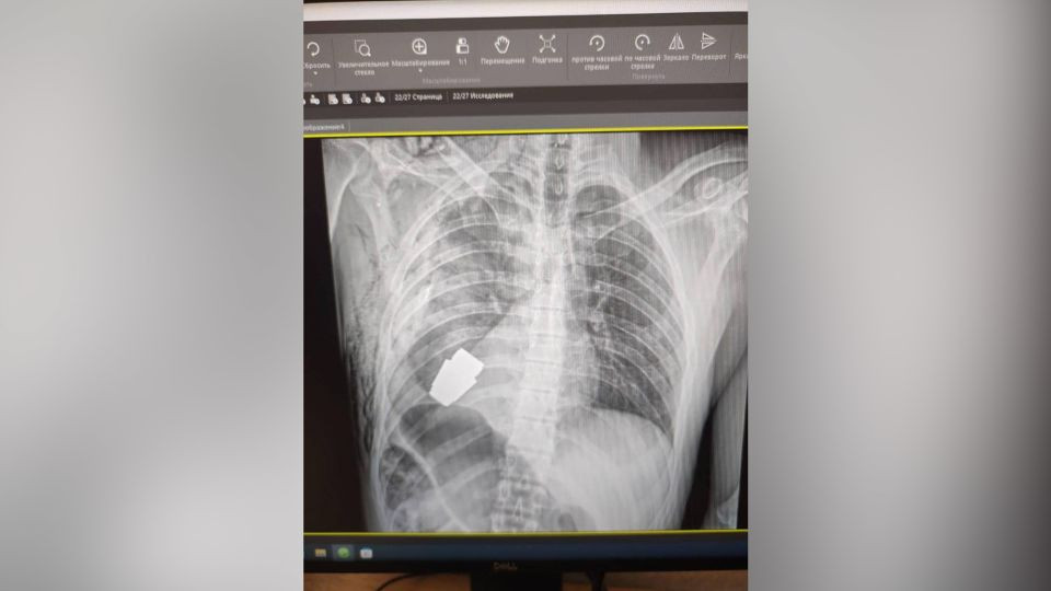 CNN đưa tin, hình ảnh chụp X-quang được lực lượng quân y Ukraine công bố cho thấy quả lựu đạn nằm ở phần thân trên của người lính.
