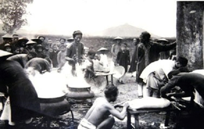 Người hầu trong cung chuẩn bị yến tiệc.