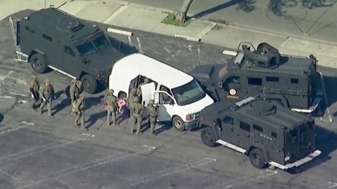 Niềm vui khi đón Tết Nguyên đán của người dân tại thành phố Monterey Park, California chưa kéo dài đã chuyển thành lo lắng khi nghi phạm xả súng giết chết 10 người vẫn chưa bị bắt sau hơn nửa ngày. Đến tối 22/1 (giờ địa phương), vài phút sau khi các đặc nhiệm SWAT được nhìn thấy xông vào một chiếc xe tải trắng (trong ảnh) ở Torrance, California, đài ABC7 đưa tin rằng phóng viên đã tìm thấy một thi thể trên ghế lái của chiếc xe. Ảnh: Reuters.