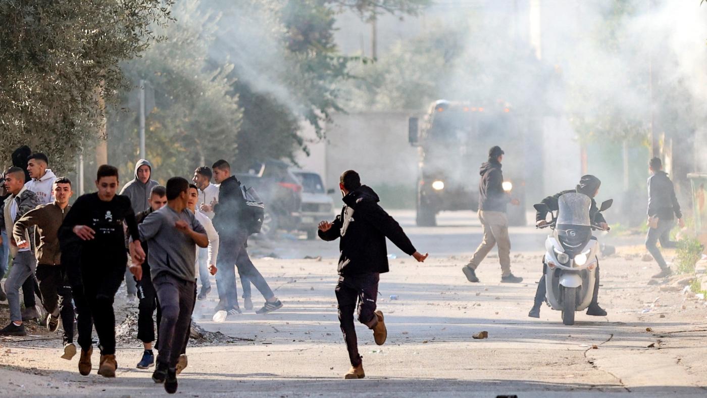 Người Palestine chạy tìm chỗ ẩn nấp sau khi lực lượng Israel đột kích vào thành phố Jenin bị chiếm đóng ở Bờ Tây vào ngày 26/1/2023. Ảnh AFP