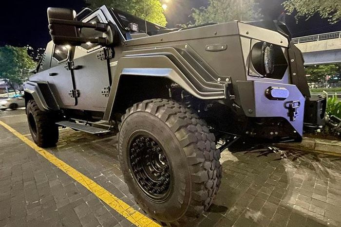 Chiếc xe bán tải này có thể chống được các loại súng cầm tay đơn giản, ngoài ra nó còn có trang bị thêm tời điện, bánh xe khổng lồ và hệ thống treo không phải của FOX mà của hãng King Off-Road Racing.