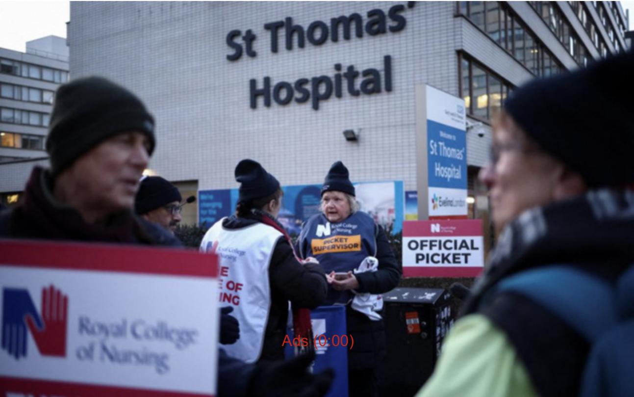 Các y tá tham gia biểu tình bên ngoài bệnh viện St Thomas ở thủ đô London, Anh hồi tháng 12/2022.