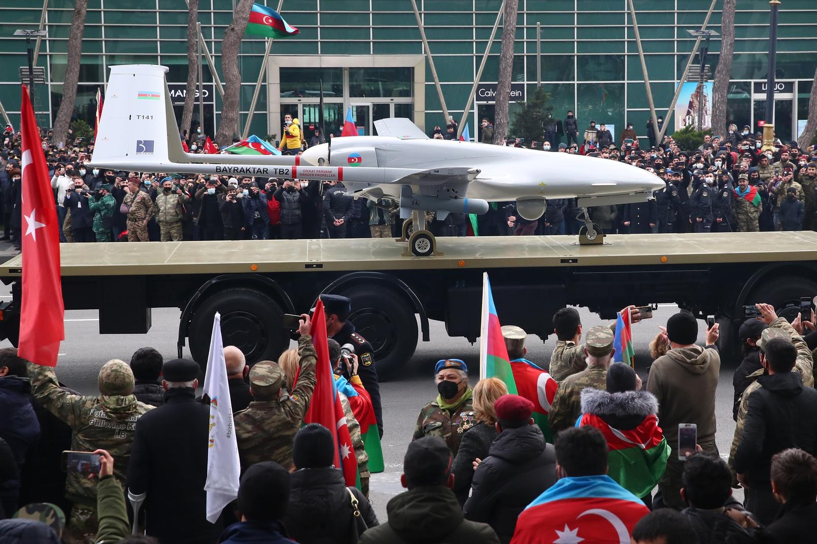 Một máy bay không người lái Bayraktar TB2 của Azerbaijan - một trong những vũ khí chủ chốt giúp nước này giành thắng lợi trong cuộc chiến tại Nagorno-Karabakh năm 2020. Ảnh: TASS.
