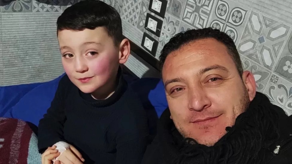 Anh Ismael Alrej và con trai, Mustafa, ở trong bệnh viện 5 phút trước khi trận động đất xảy ra. Ảnh: BBC.