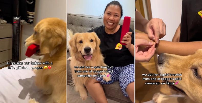 Người chủ gia đình đã chia sẻ video trên kênh TikTok rằng người giúp việc chuyên chăm sóc Cooper suốt nhiều năm qua. Cô gắn bó với nó từ khi chỉ là một chú cún nhỏ. Để cảm ơn người phụ nữ này, gia đình đã tặng cô một chiếc vòng tay bằng vàng.