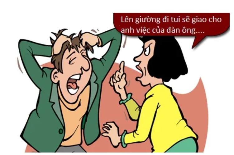 – Thế hả? Vậy thì bây giờ lên giường đi, tôi sẽ giao cho anh việc của đàn ông!