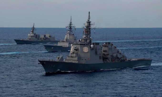 Tàu chiến Nhật Bản, Australia diễn tập chung ở vùng biển phía đông Philippines hồi năm 2021. Ảnh: US Navy.