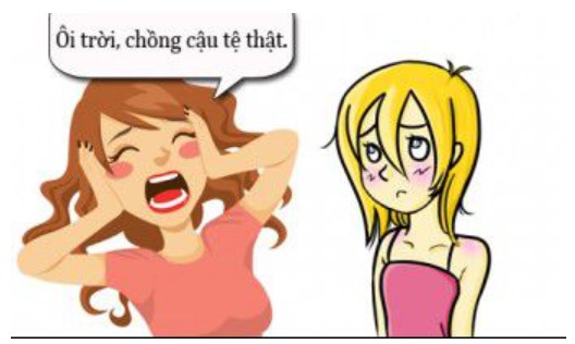- Ôi trời, chồng cậu tệ thật đấy. Hóa ra, cậu sút cân là do phải đi thu dọn chiến trường chồng cậu bày ra đấy à?
