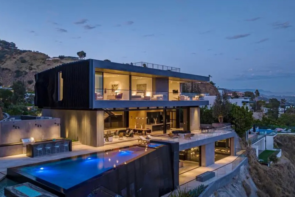 Biệt thự được công ty Roman James Design xây dựng trên sườn đồi vào năm 2022 với tầm nhìn hướng ra Sunset Strip và Chateau Marmont.