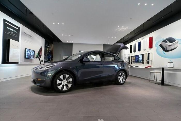 Một chiếc Tesla Model Y Long Range được trưng bày vào ngày 24/2/2021, tại Phòng trưng bày Tesla ở Troy, Mich. Ảnh: AP