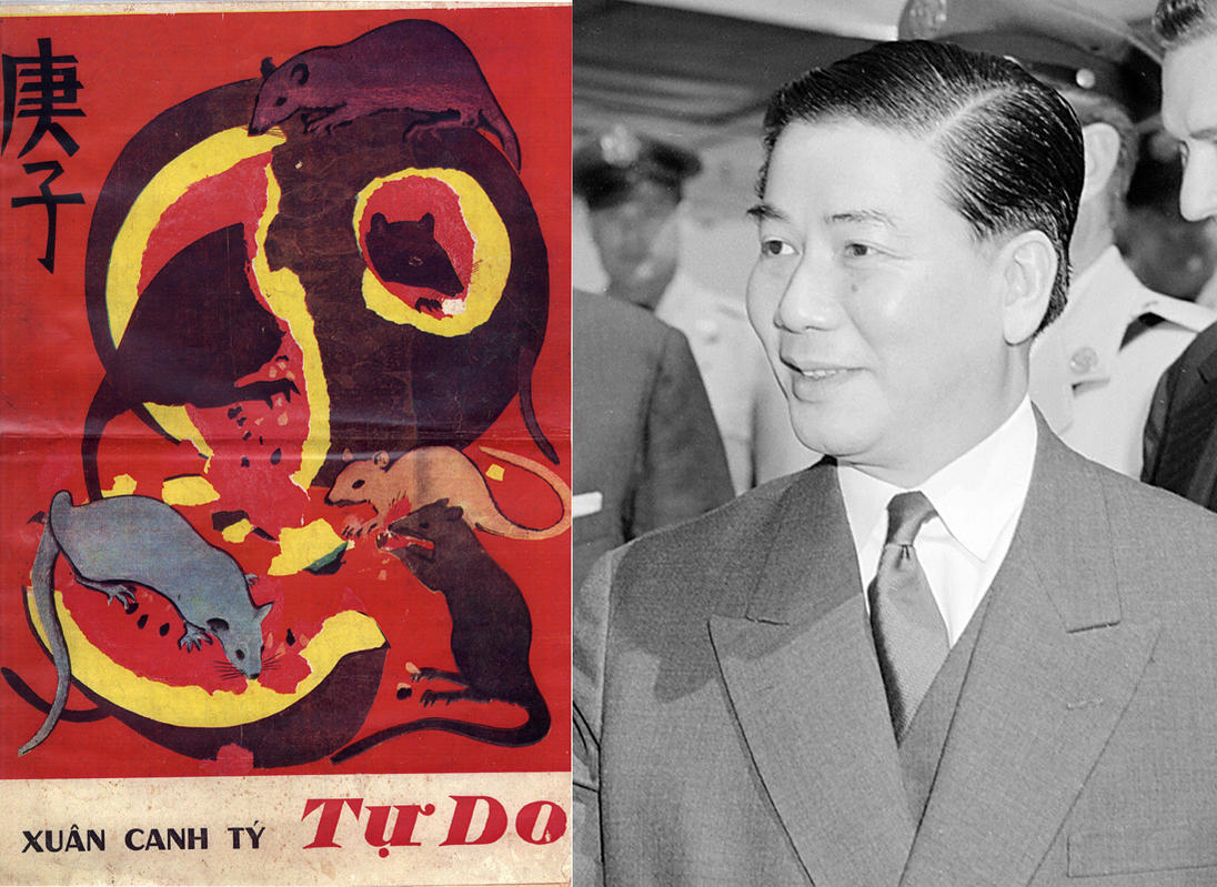 Vì sao Ngô Đình Diệm nổi điên với bức tranh chuột Tết Canh Tý 1960? Đs là tranh bìa số Xuân của báo Tự Do năm Canh Tý 1960 vẽ 5 con chuột đang ăn quả dưa hấu: một bìa báo bình thường, chủ đề bức họa là chỉ về con giáp của năm mới, một thói quen của làng báo lúc bấy giờ. Nhưng điều đó lại khiến Ngô Đình Diệm điên tiết.