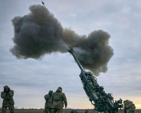 Binh sĩ Ukraine bắn vào các vị trí của Nga từ một khẩu lựu pháo M777 do Mỹ cung cấp ở vùng Kherson ngày 9/1/2023. Ảnh AP