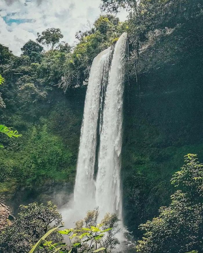Từ độ cao khoảng 35m dòng nước đổ xuống mạnh mẽ, mang theo luồng không khí đầy bụi nước mát lạnh, tạo nên dòng thác hùng vỹ, trắng xóa.