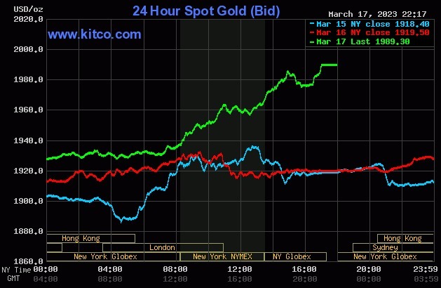 Mỗi ounce vàng tăng gần 70 USD hôm qua, khi thị trường rối loạn vì cuộc khủng hoảng trong ngành ngân hàng.