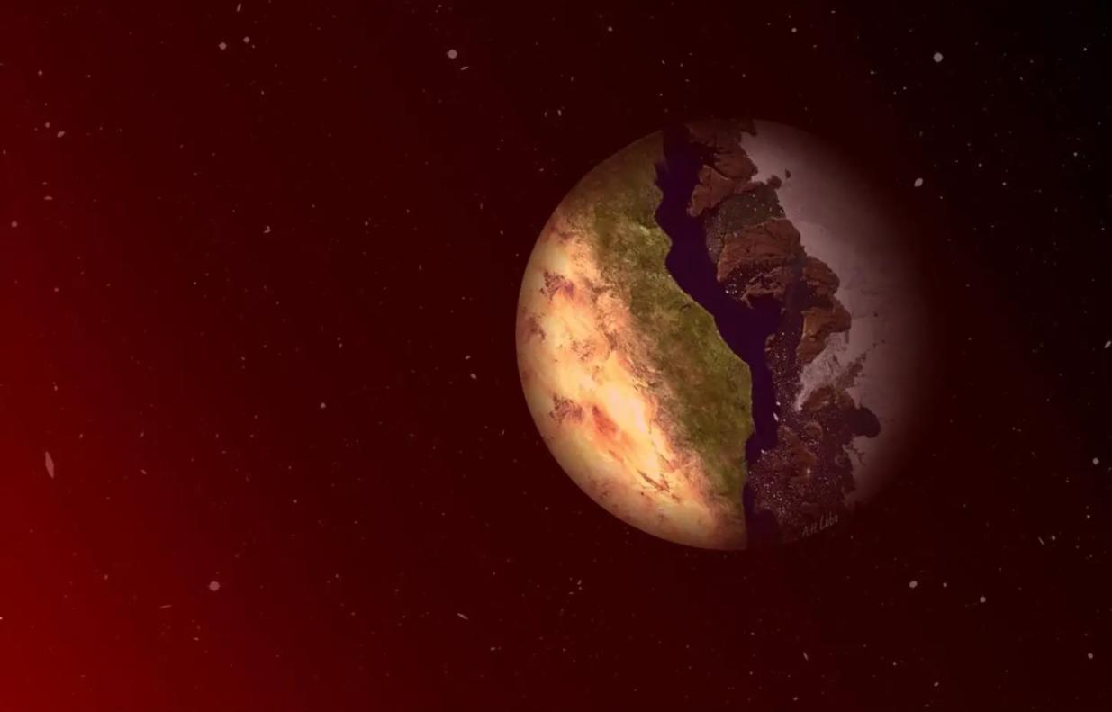 Mô phỏng hành tinh hủy diệt (terminator planet), nơi giáp ranh giữa hai thái cực thời tiết có thể là khởi nguồn của sự sống. Ảnh: Ana Lobo/ UCI