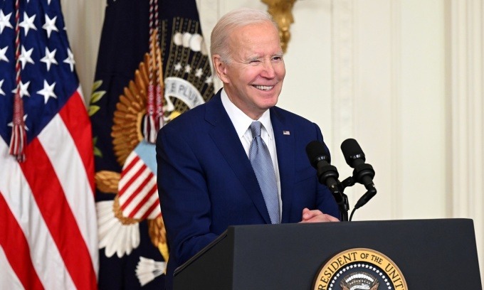 Tổng thống Mỹ Joe Biden phát biểu trong lễ trao giải Nghệ thuật và Nhân văn tại Nhà Trắng ngày 21/3. Ảnh: AFP.