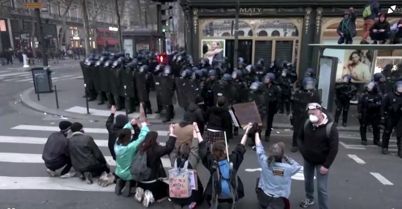 Cảnh sát đã bắn hơi cay và giao tranh với những người theo chủ nghĩa vô chính phủ mặc áo đen ở Paris và khắp nước Pháp vào hôm thứ Năm, 23 tháng 3, khi hàng trăm ngàn người biểu tình diễn hành phản đối kế hoạch tăng tuổi hưởng lương hưu của Tổng thống Emmanuel Macron. Ngày thứ chín của các cuộc biểu tình trên toàn quốc, đa phần là ôn hòa, đã làm gián đoạn việc đi lại bằng đường hỏa xa và đường hàng không. Reuters cho hay giáo viên là một trong số nhiều ngành nghề đình công, vài ngày sau khi chính phủ thúc đẩy luật tăng tuổi nghỉ hưu thêm hai năm lên 64. Các cuộc biểu tình ở trung tâm Paris nhìn chung đều ôn hòa, nhưng các nhóm theo chủ nghĩa vô chính phủ của “Black Bloc” đã đập phá cửa sổ các cửa hàng, phá dỡ đồ đạc trên đường phố và cướp phá một nhà hàng McDonald’s. Các cuộc đụng độ đã xảy ra sau đó khi cảnh sát chống bạo động đẩy lùi những kẻ vô chính phủ bằng hơi cay và lựu đạn gây choáng. Ông Gerald Darmanin, Bộ trưởng Bộ Nội vụ, nói 149 cảnh sát đã bị thương và 172 người bị bắt trên toàn quốc. Hàng chục người biểu tình cũng bị thương, trong đó có một phụ nữ bị mất ngón tay cái ở thị trấn Rouen thuộc Normandy. Nhiều nhóm nhỏ đã tiếp tục đụng độ với cảnh sát ở Paris cho đến tận đêm khuya, phóng hỏa khắp trung tâm thành phố và chơi trò mèo vờn chuột với lực lượng an ninh.