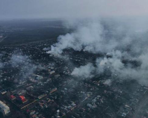 Toàn cảnh chiến trường thảm khốc Bakhmut nhìn từ trên cao.