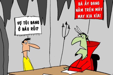 - Thưa diêm vương, vợ con đâu rồi ạ?