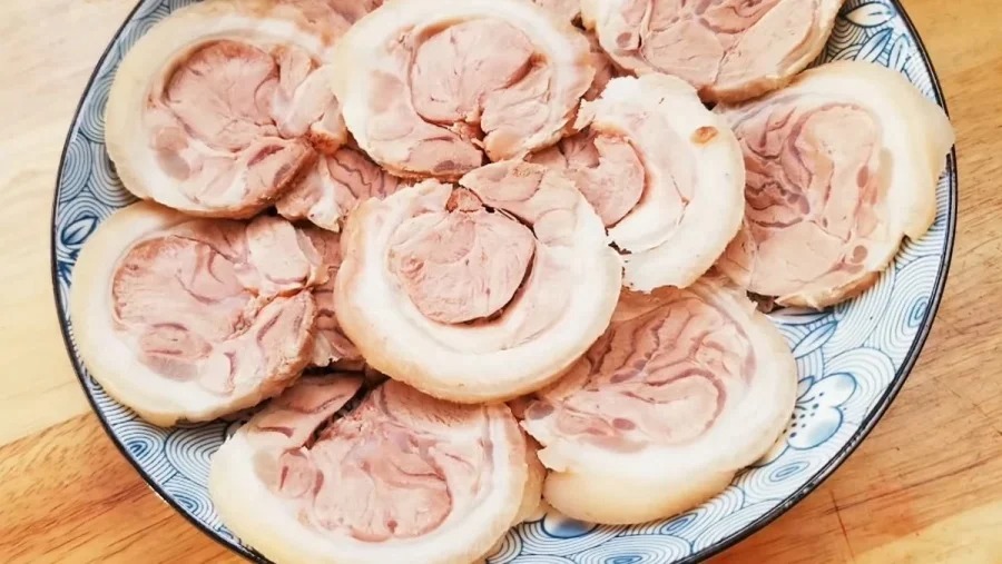 Để luộc lần thứ hai, bạn nên chuẩn bị một nồi nước sôi và thả miếng thịt vào đó cùng với vài hạt muối, vài lát gừng mỏng và một củ hành khô bóc vỏ. Sau đó, bạn nên đun nồi với lửa nhỏ và tiếp tục luộc miếng thịt cho đến khi nó chín tới. Khi đã chín, bạn có thể thưởng thức miếng thịt trắng ngần và thơm ngon.