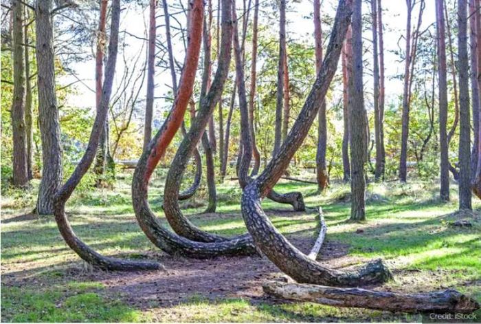 Nhiều người cho rằng thông bị bẻ cong là do sự thay đổi của trọng lực Trái đất. (Ảnh: WP)
