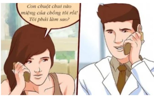 - Bác sĩ! Bác sĩ! - người phụ nữ nói với giọng hoảng hốt - Tối qua chồng tôi ngủ mở miệng, kết quả là một con chuột chui tọt vào miệng anh ấy. Tôi phải làm gì bây giờ?
